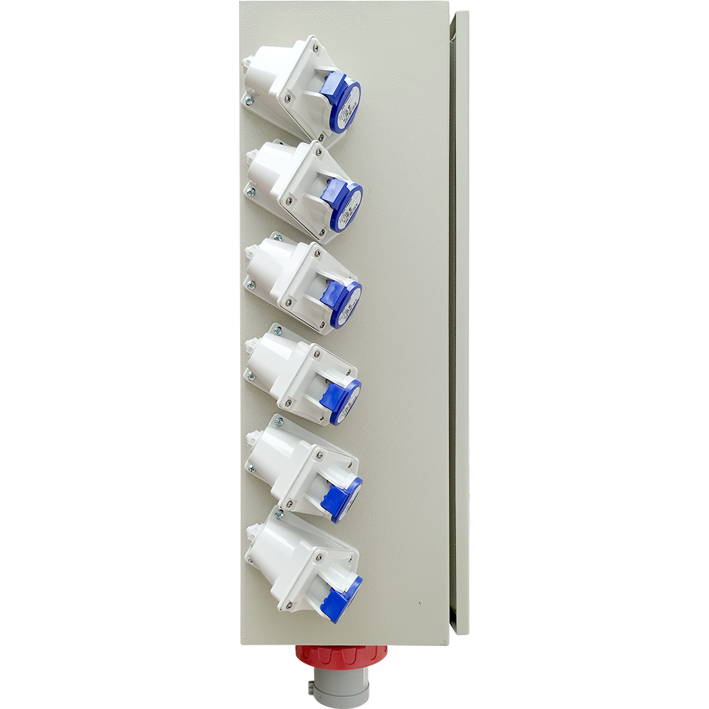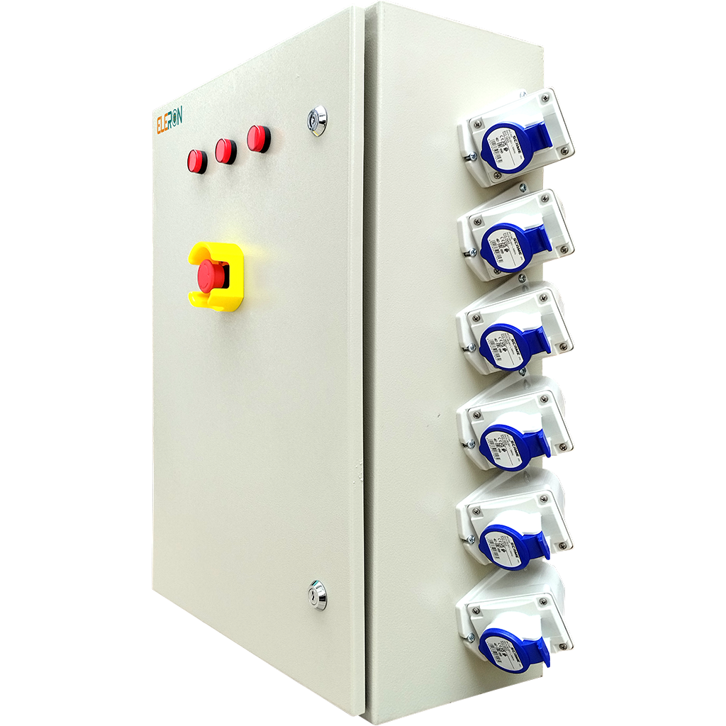 • Alimentación mediante enchufe macho SCAME 3P+N+T 63 A sobrepuesto.