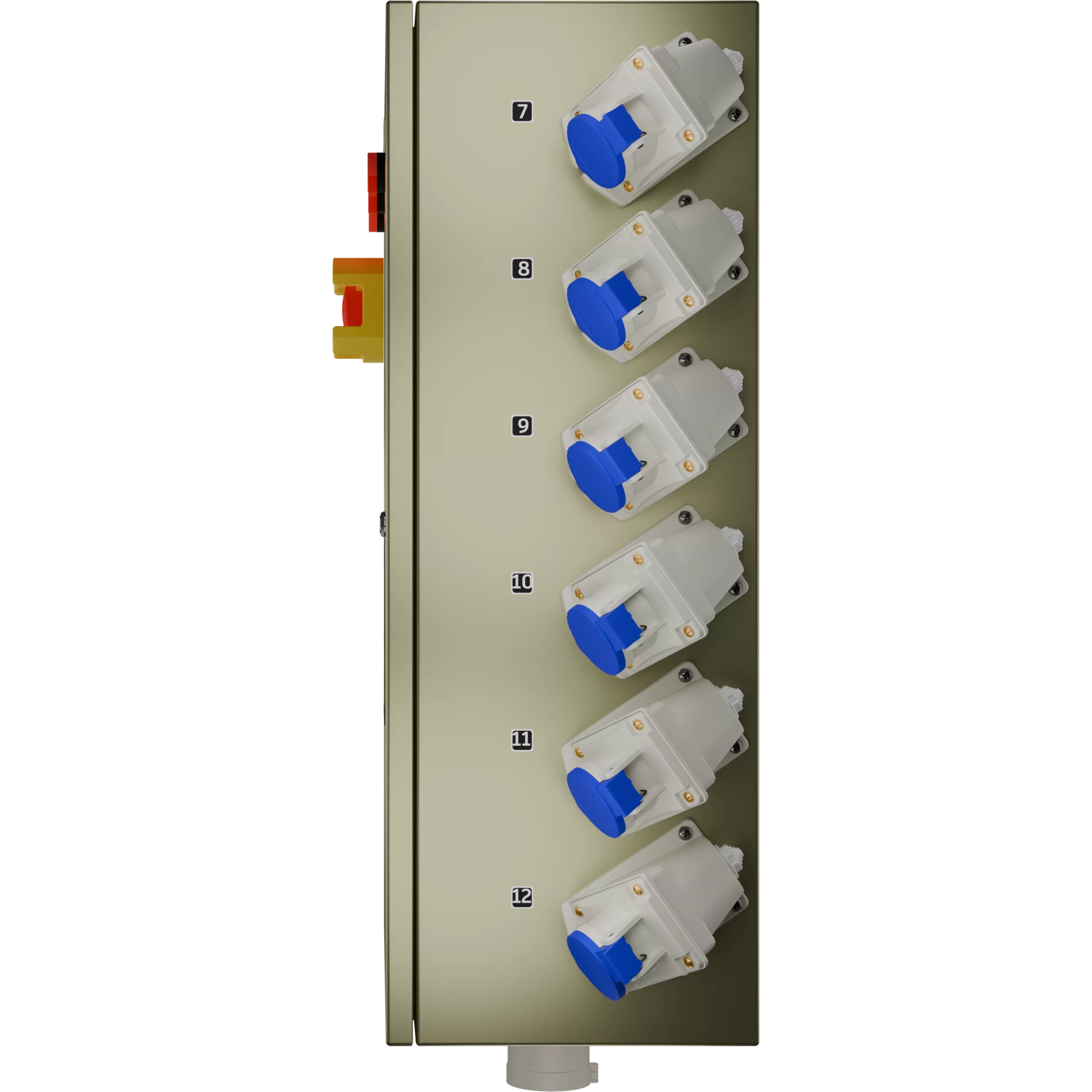 • 12 enchufes Hembra 2P+T 16 A sobrepuestos.