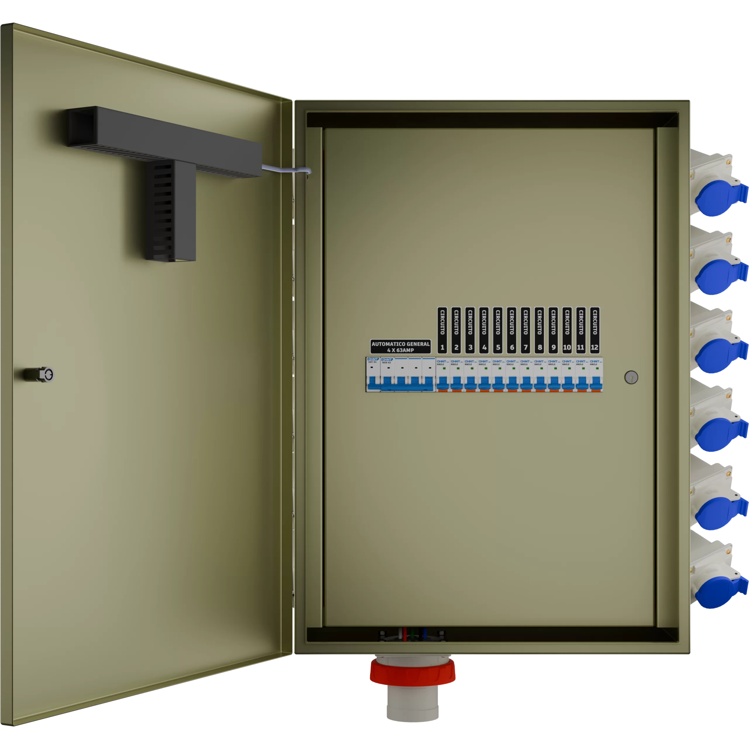 • Protección general: interruptor termomagnético CHINT 4×63 A (tres fases + neutro).