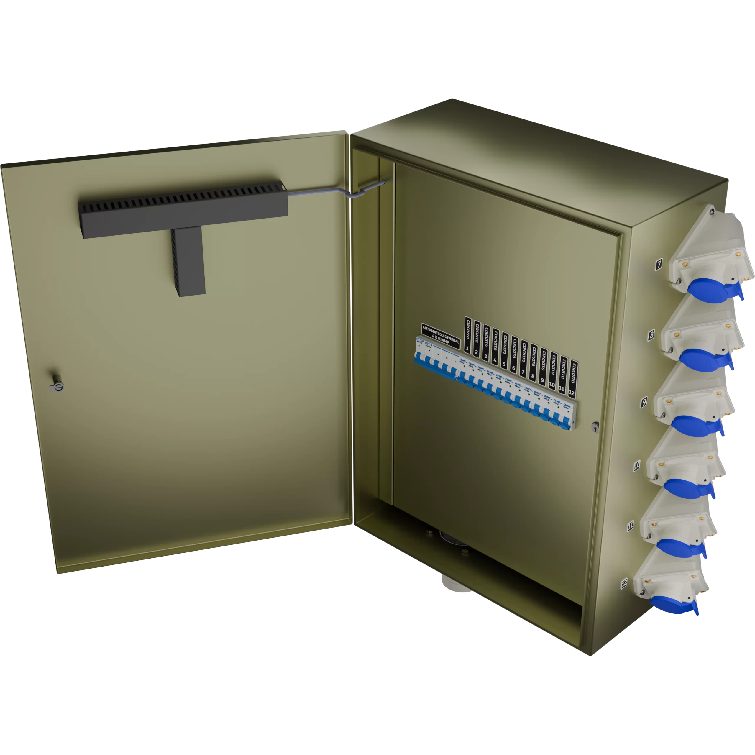TABLERO ELECTRICO GENERAL DE 4X63A CON 12 SALIDAS DE 2X16A RCBO, COMPACTO 700X500X250