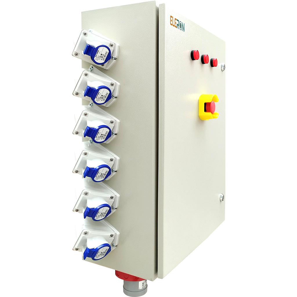 Ideal para tableros de obra, ferias, eventos, talleres, líneas de producción y distribución temporal o fija donde se requiera una entrada 3P+N+T de 63 A y múltiples salidas protegidas con RCBO.
